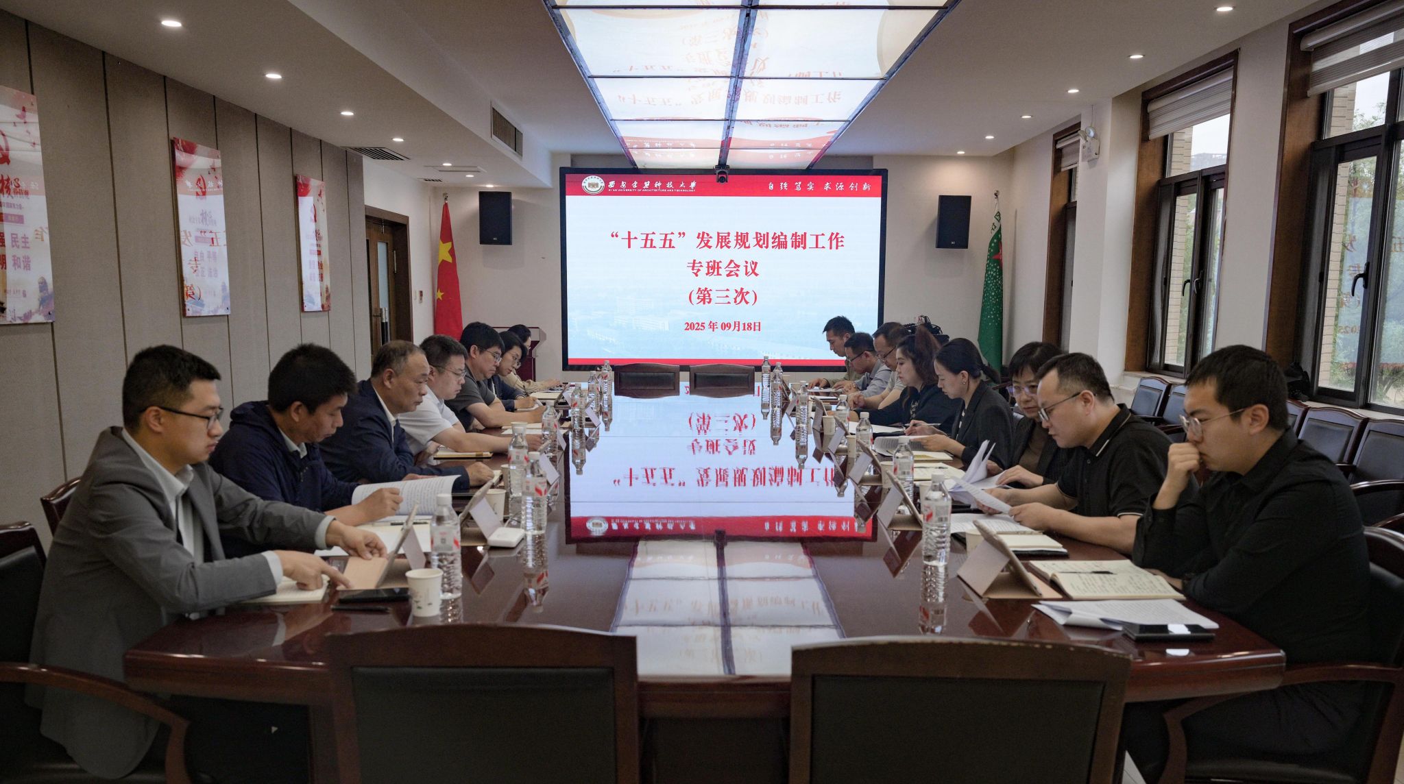 9月18日上午,我校召开“十五五”发展规划编制工作第三次专班会议。副校长高旭阔出席会议,我校“十五五”发展工作专班全体人员参加会议,会议由发展规划与学科建设处处长刘光辉主持。